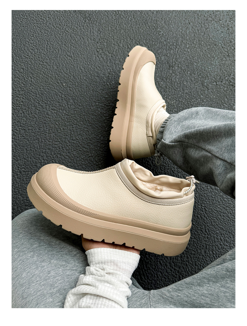 Fgmm Same Style as Stars Autumn and Winter Men's and Women's Same Style Fleece-lined Lefu Snow Boots Thick Sole Increased by Slip-on Big Head Shoes
