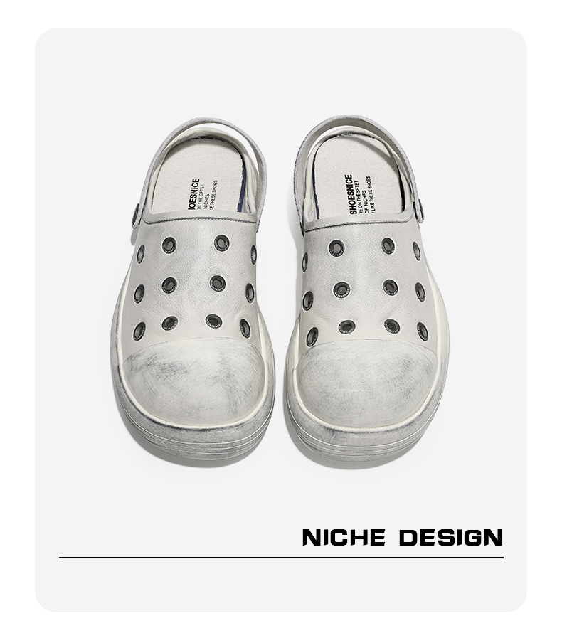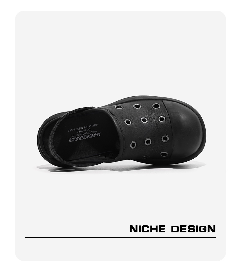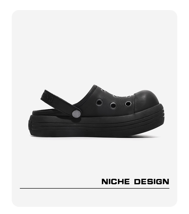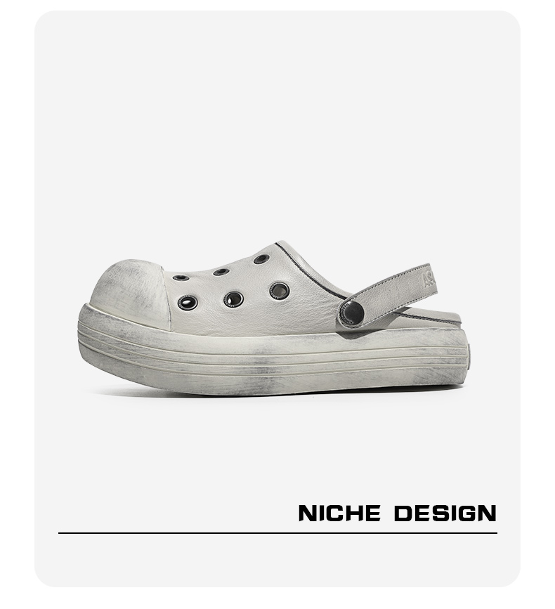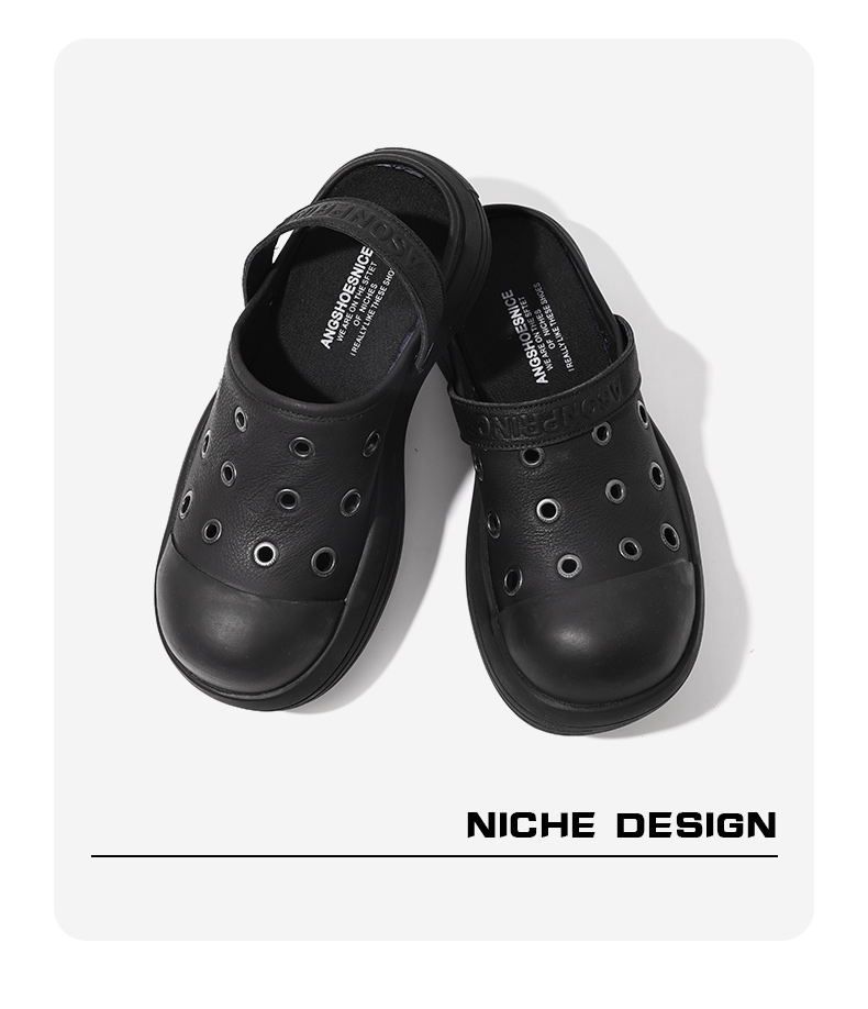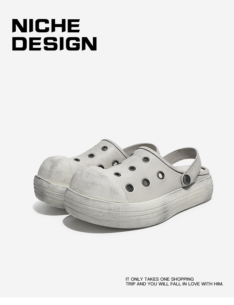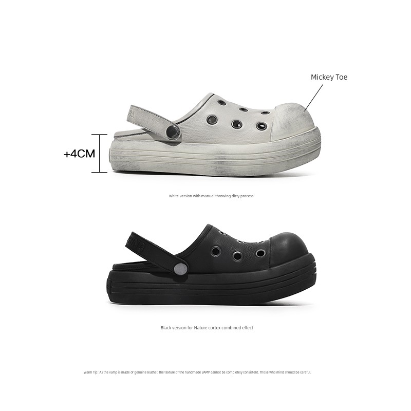 Fgmm Thick Bottom Increased Mickey Big Head Slippers Nappa Leather Step on Shit Feeling Slip-on Porous Shoes Summer Men and Women Same Style