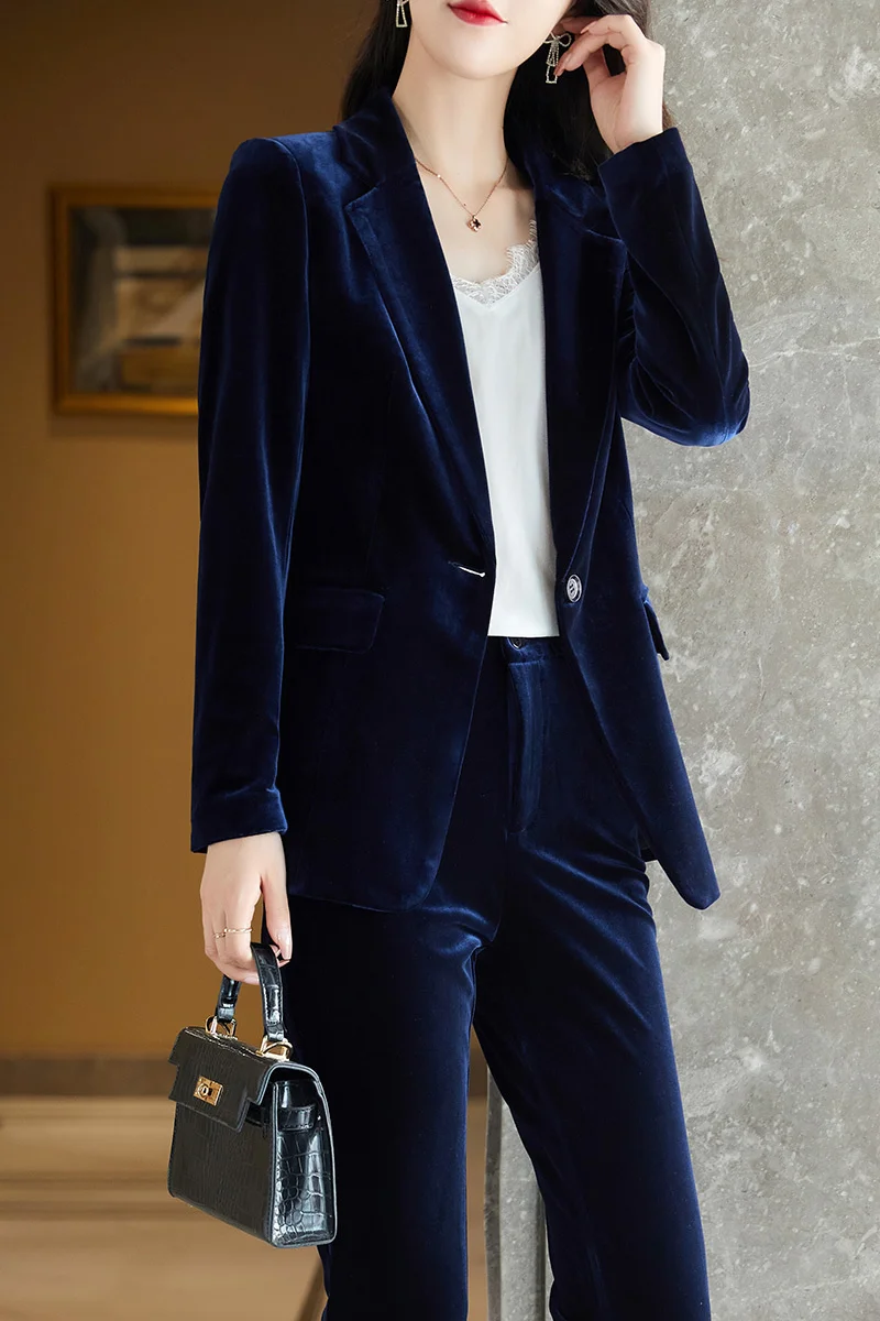 High Quality Fabric Velvet Formal Women Business Suits OL Styles Professional Pantsuits Office Work Wear Autumn Winter Blazers