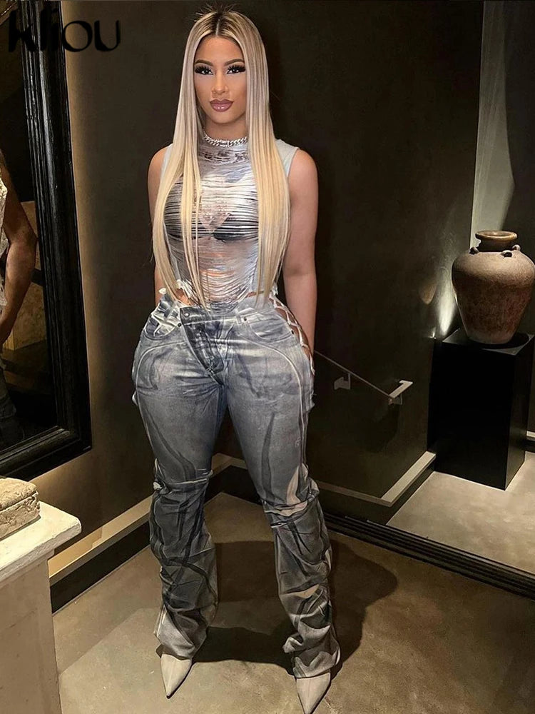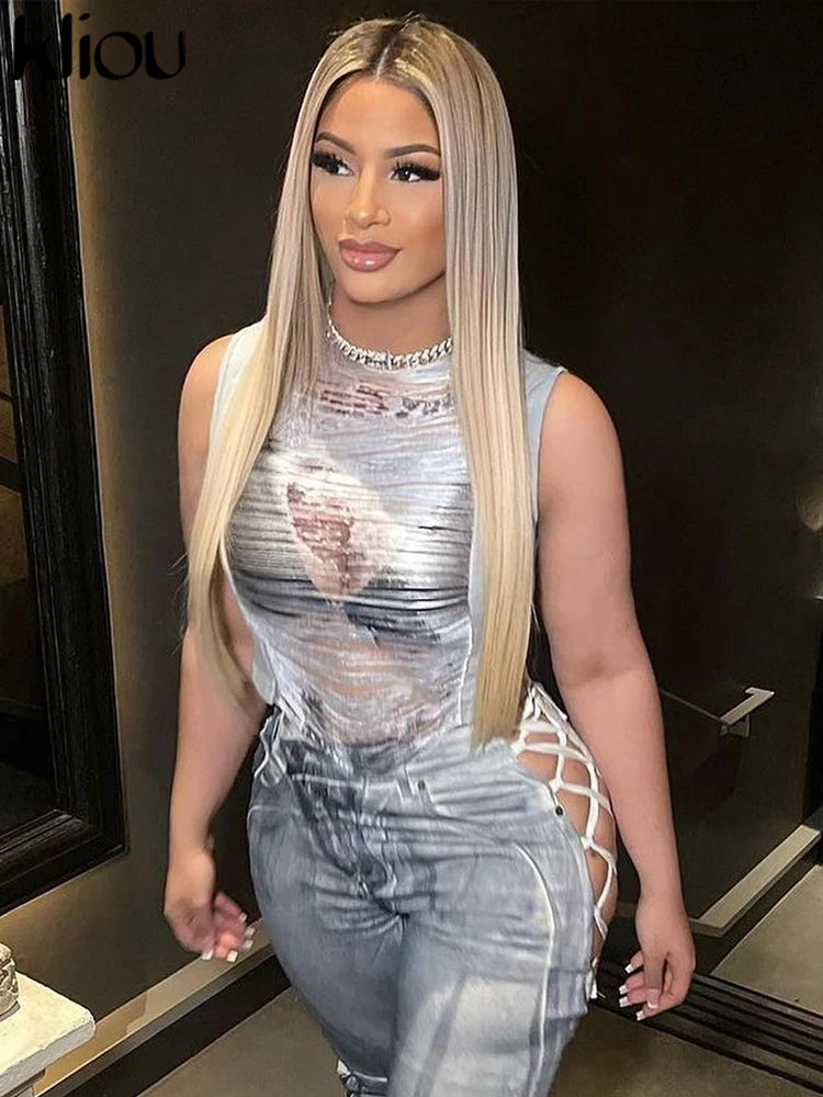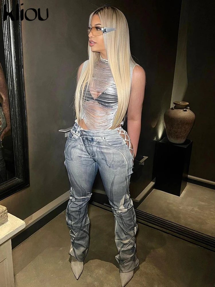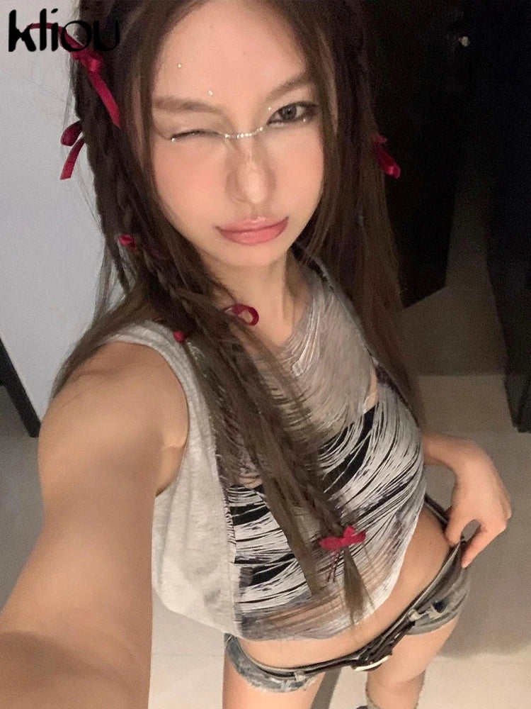 Kliou Tassel Solid Stacked Vests Women Summer Shiny Stunning O-neck Unique Bare Midriff Tanks Female Attractive Party Camisole