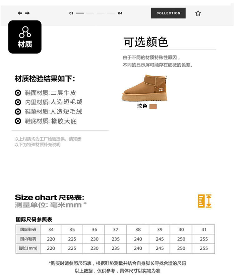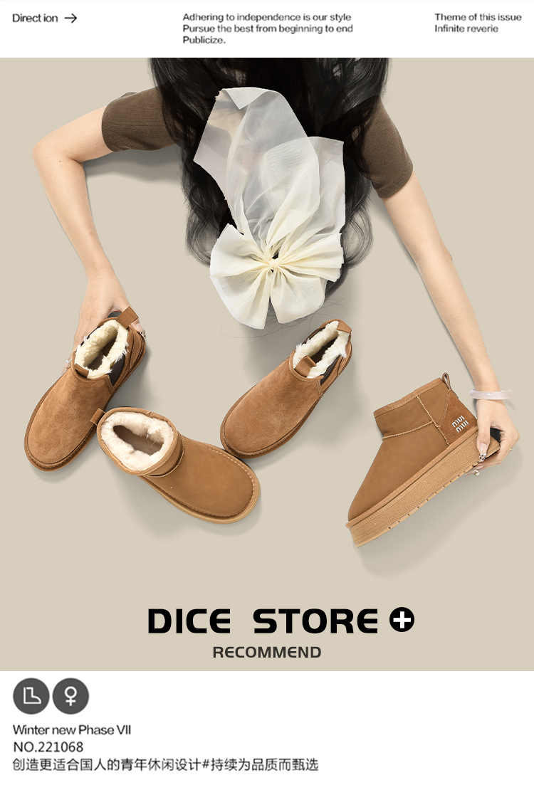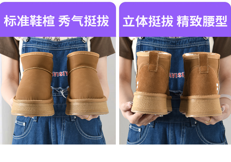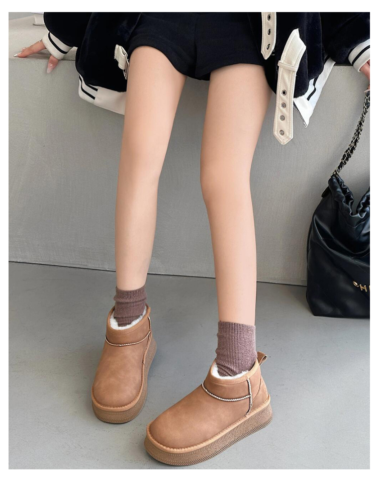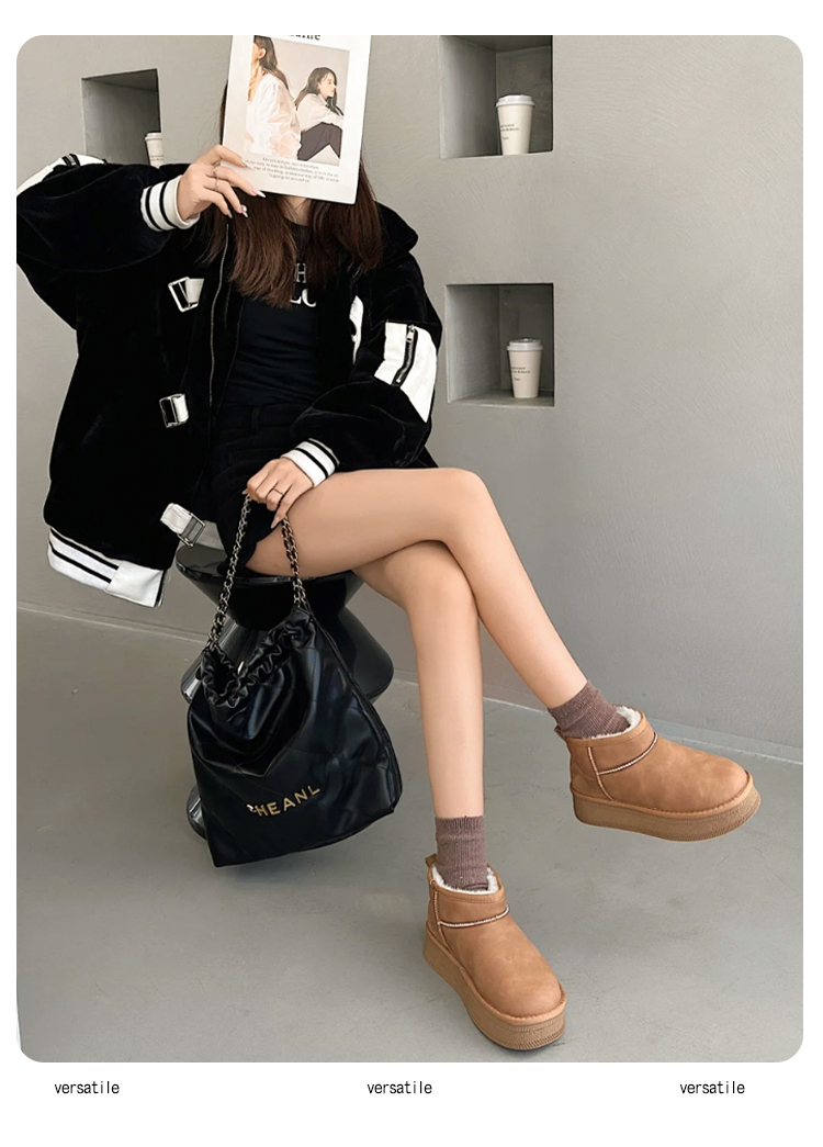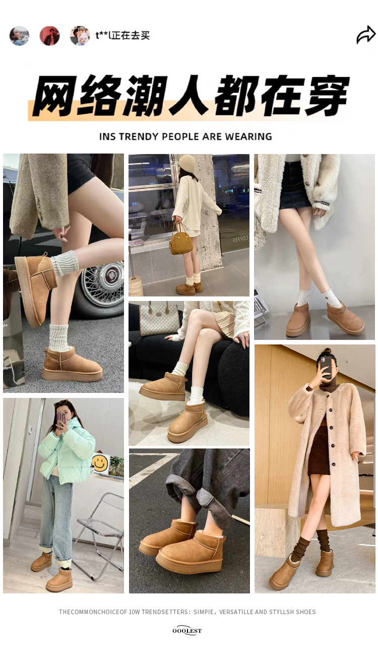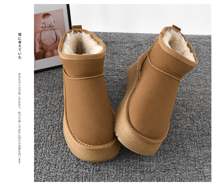 Miu's Thick Sole Short Snow Boots Women's 2024 Winter New Arrival Genuine Leather plus Velvet for Warmth Fashion Slip-on Ankle Boots