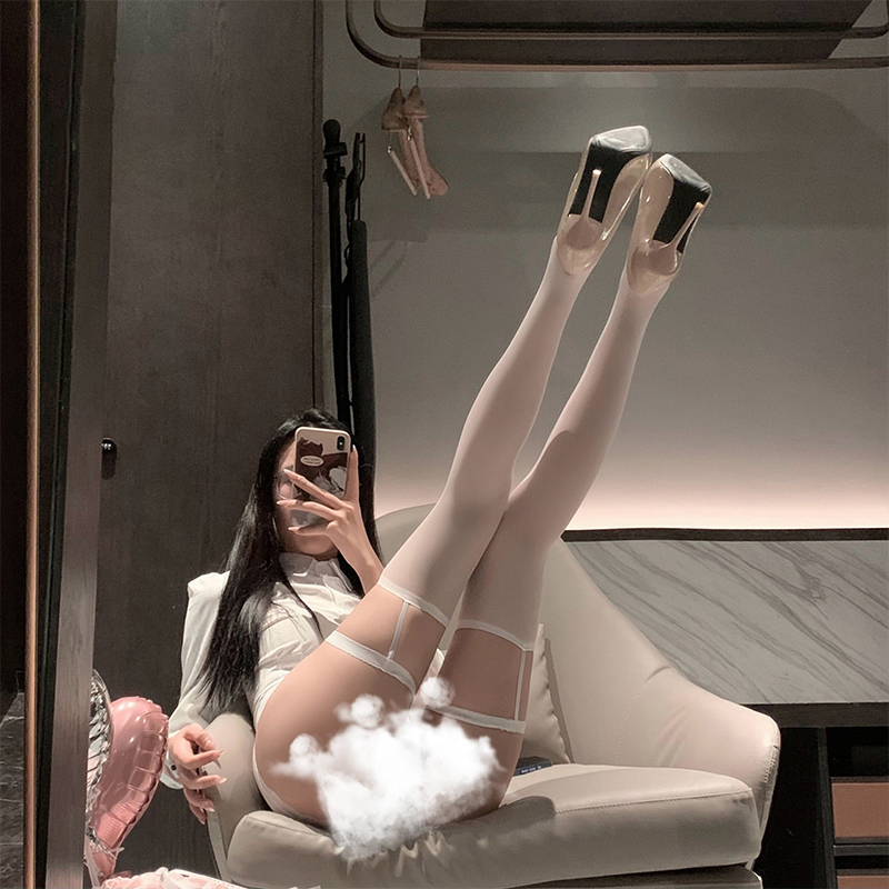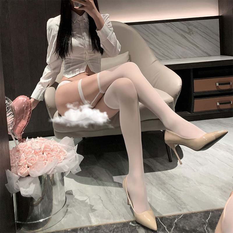 Pure Desire White Silk Emotional Leg Ring Stockings Women's Long Lace Black Silk Integrated Garter Belt Half over the Knee Fishnet Socks