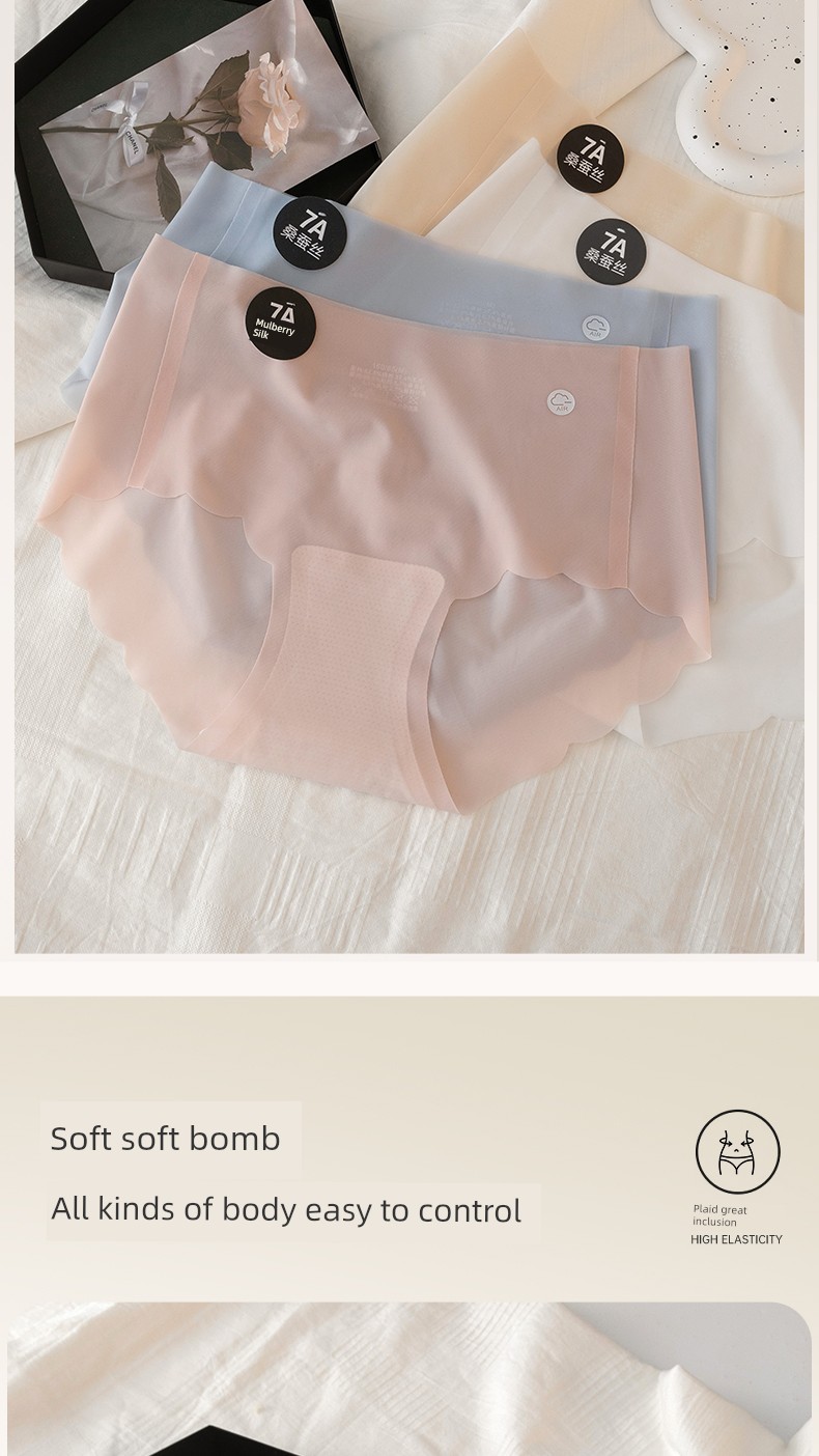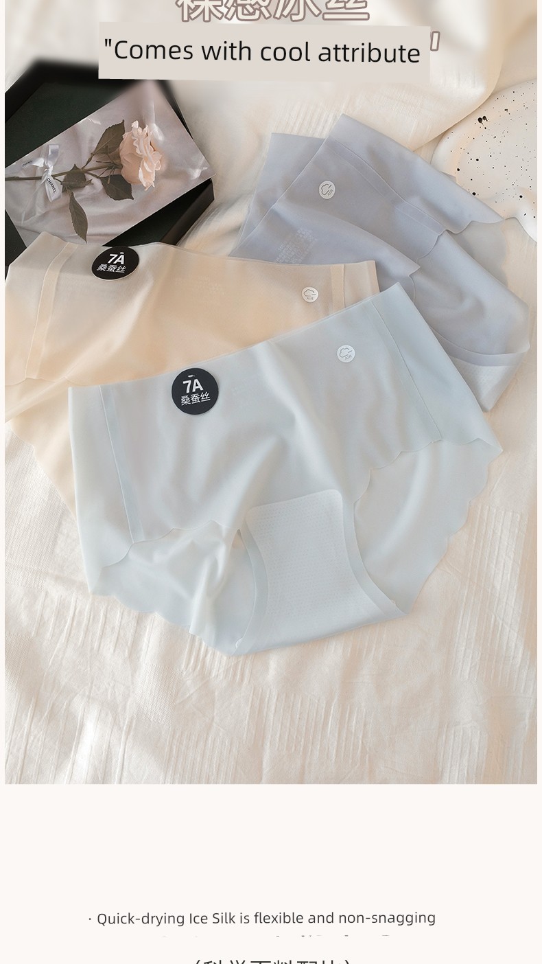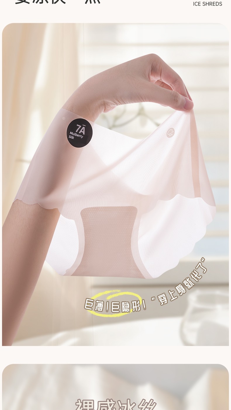 Seamless Underwear Girls' Antibacterial Crotch Quick-Drying Mask Ice Silk Summer Ultra-Thin Peach Hip Fitness Women's Briefs