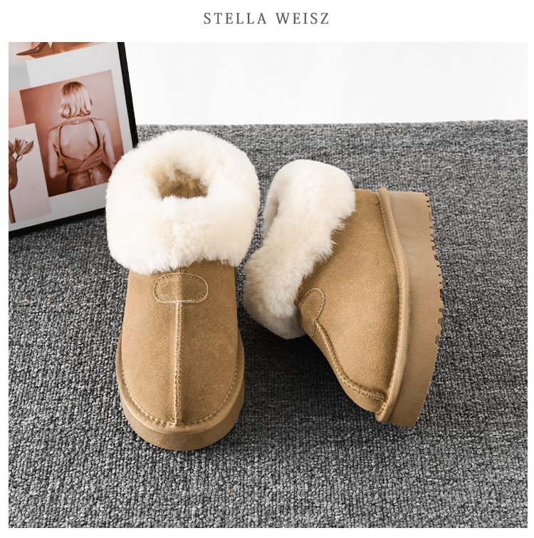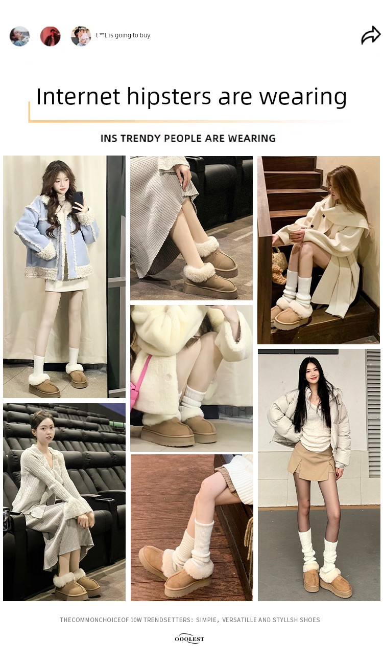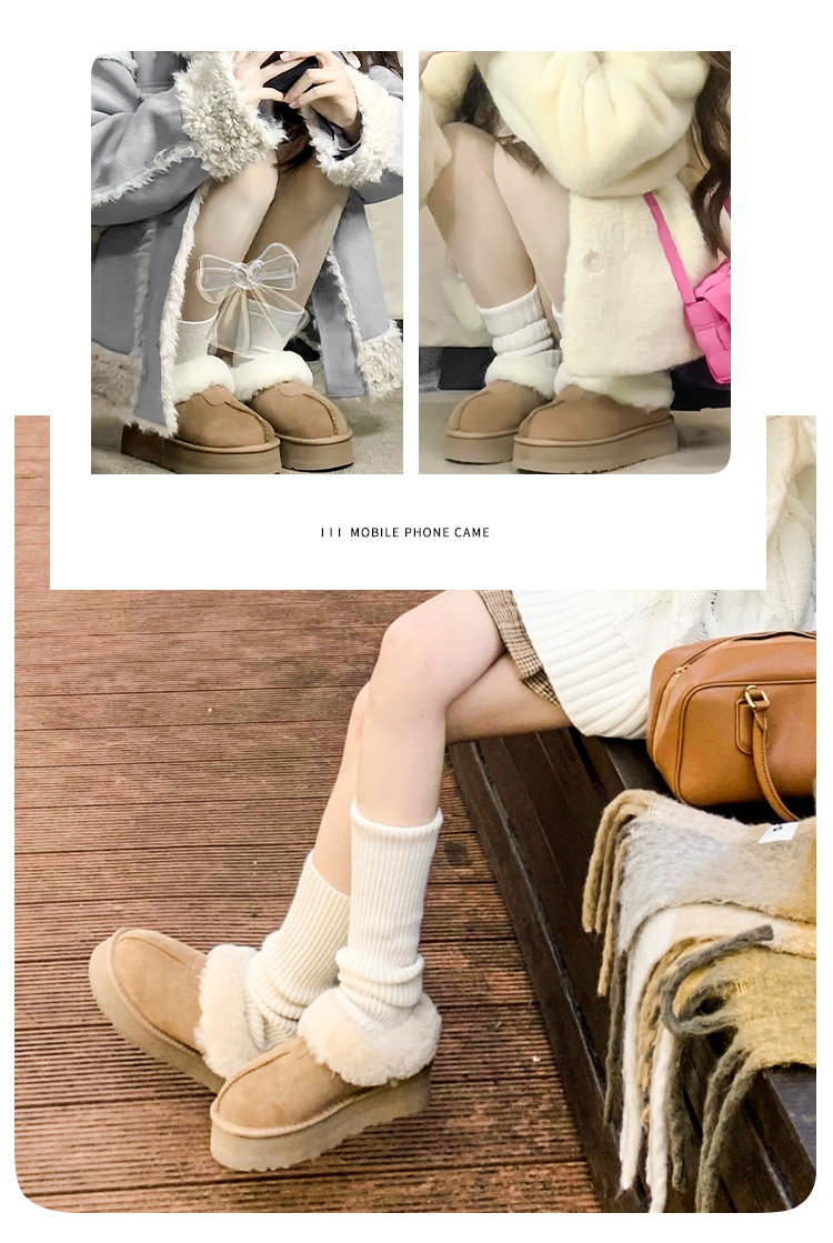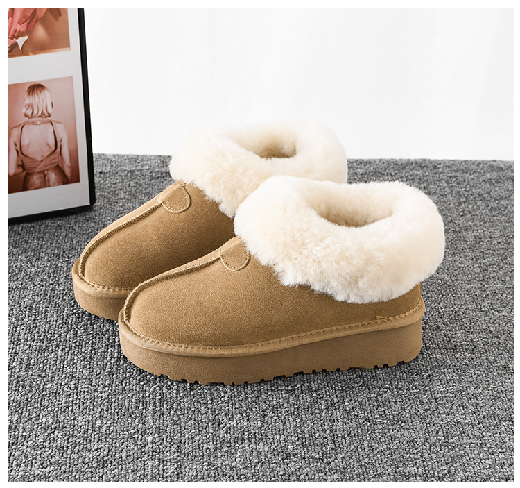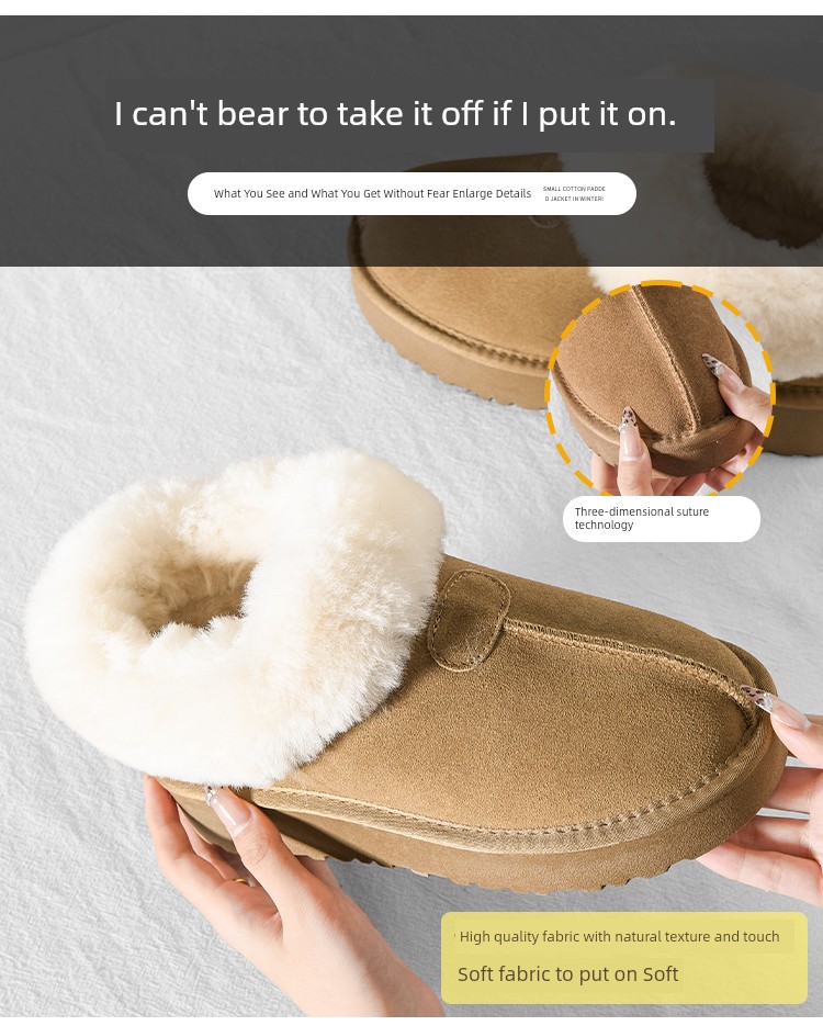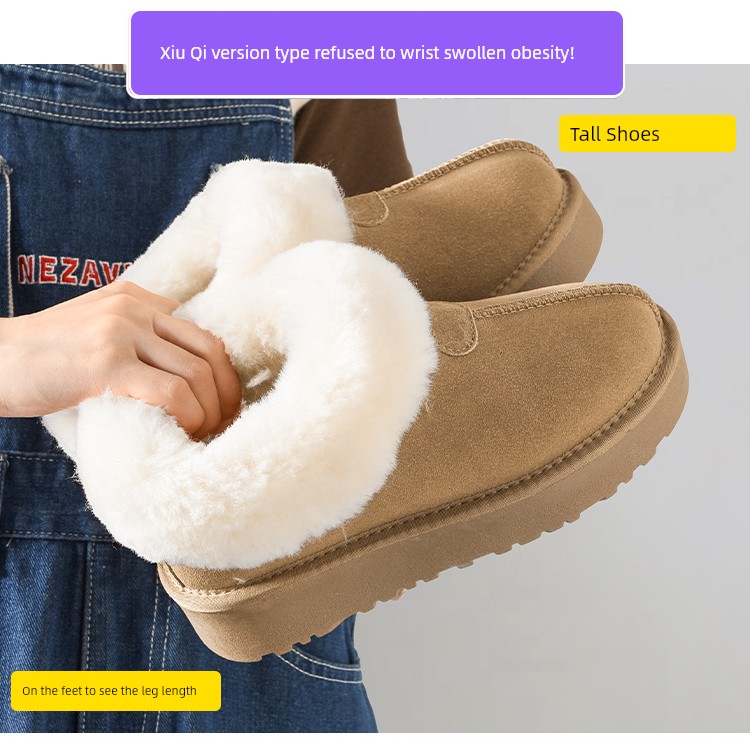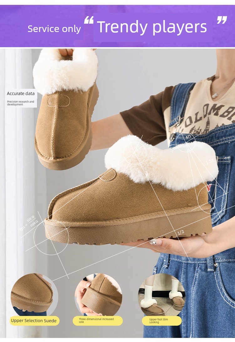 Tarttt Platform Snow Boots Women's 2024 New Arrival Winter Fur Integrated Platform Slip-on Fleece-lined Mulberry Slope Cotton-Padded Shoes