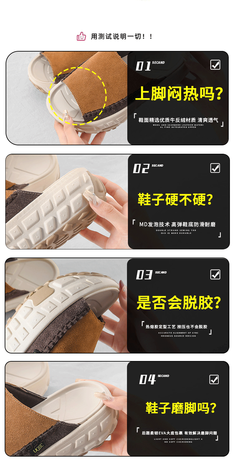 Tasman Slippers Slip-on Resin Sole Women 2024 Summer New Arrival Breathable Thick Sole Increased Casual Lazybones' Shoes Men
