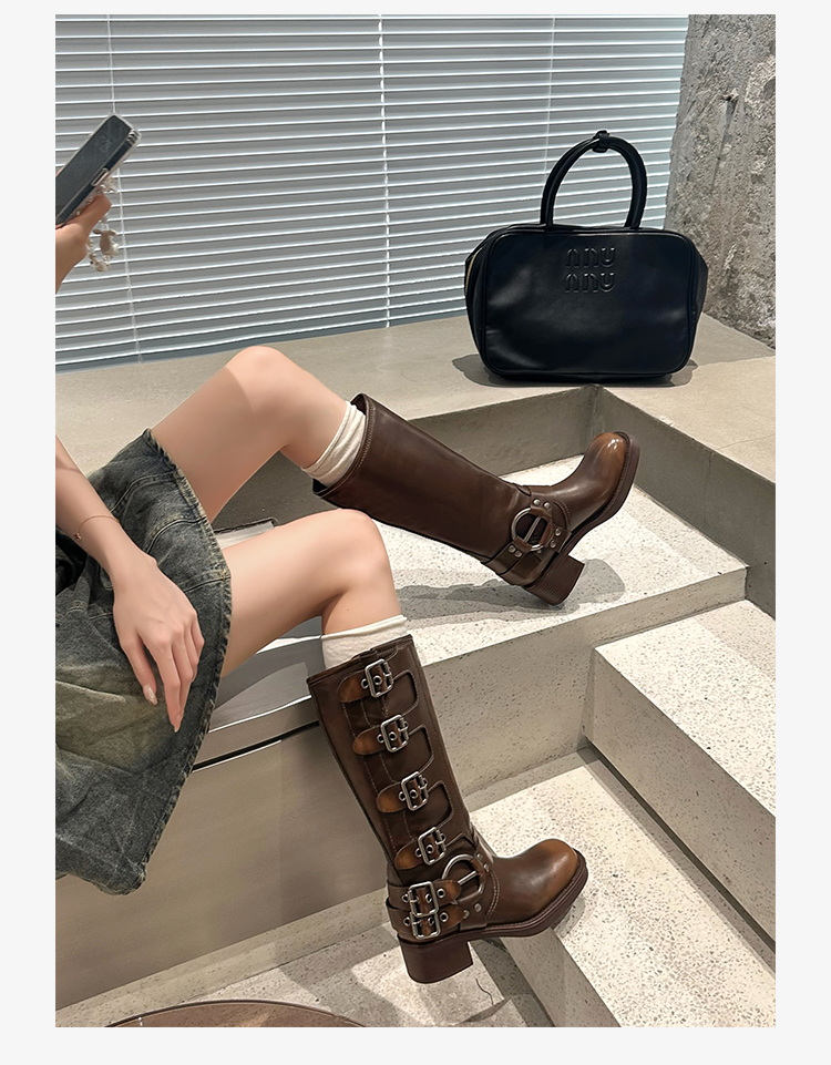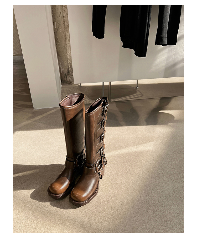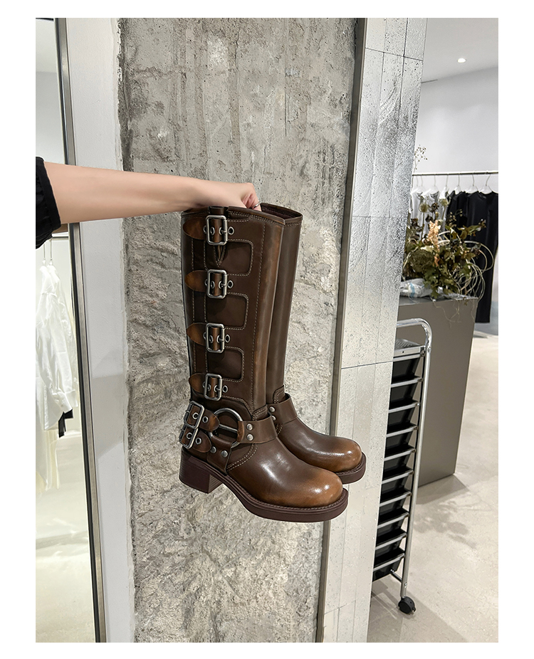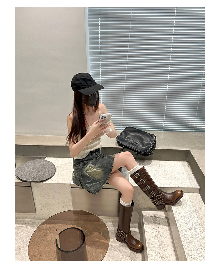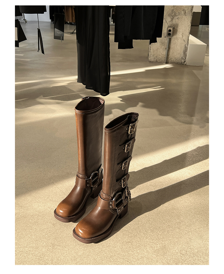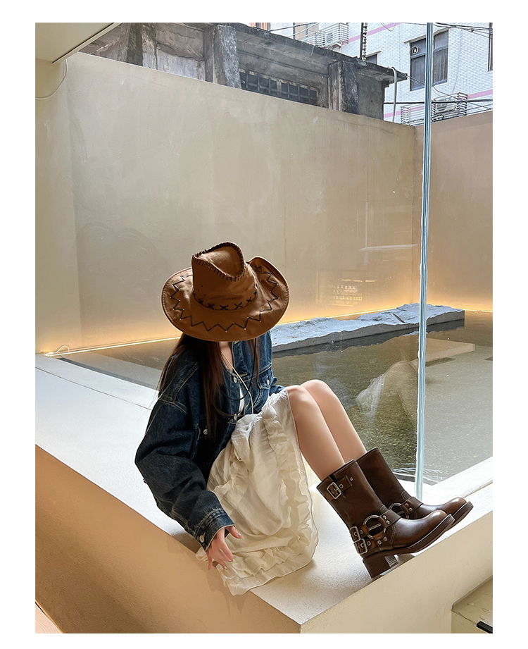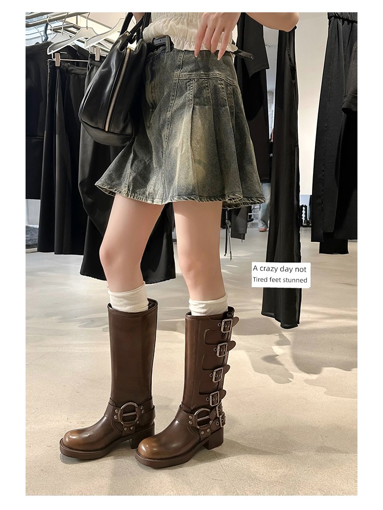 Travel Match ~ Uncle Miu Genuine Leather Thigh High Boots Western Cowboy Boot Women's Fall and Winter Knight Boots Brown Boots