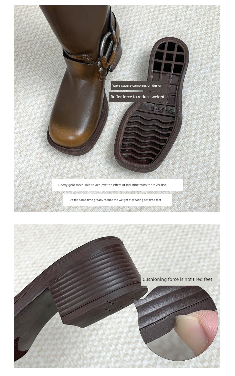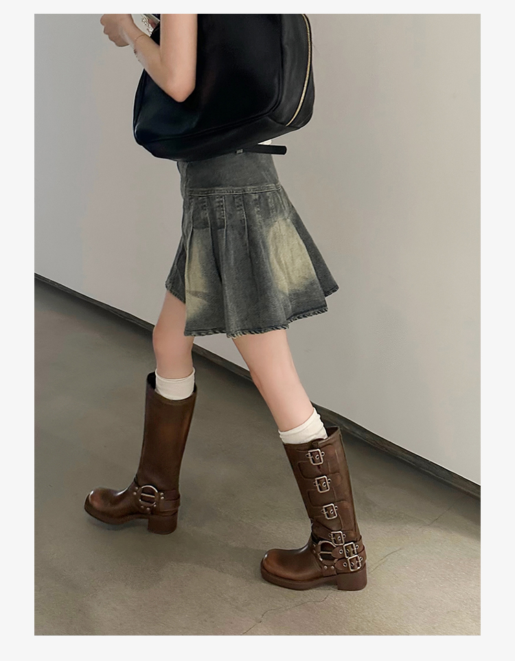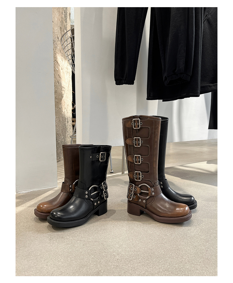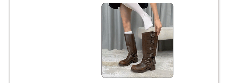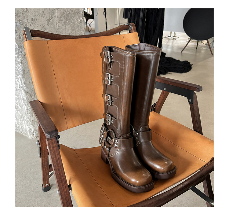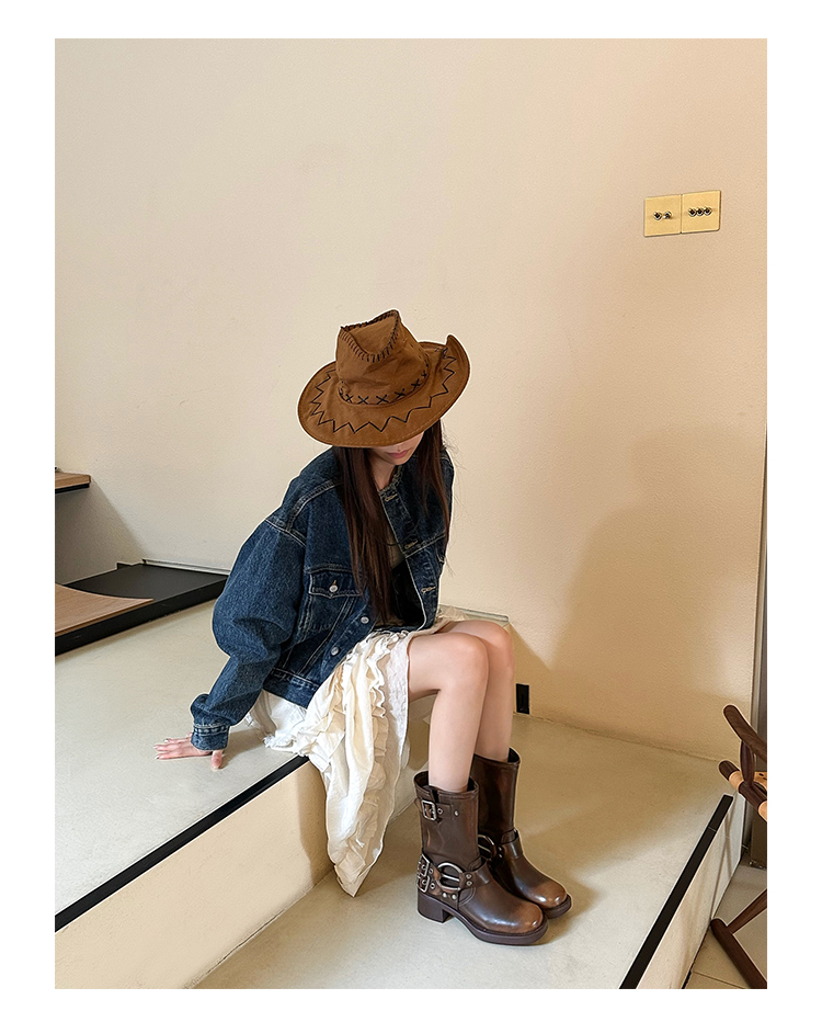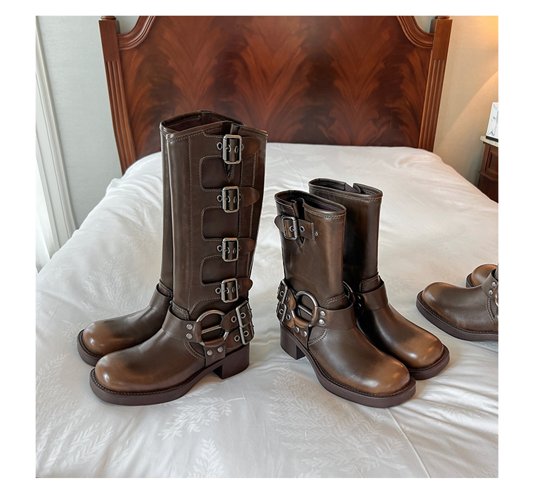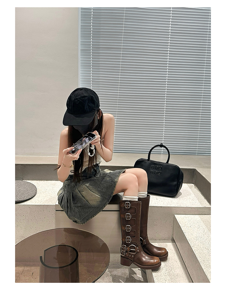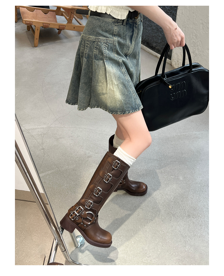 Travel Match ~ Uncle Miu Genuine Leather Thigh High Boots Western Cowboy Boot Women's Fall and Winter Knight Boots Brown Boots