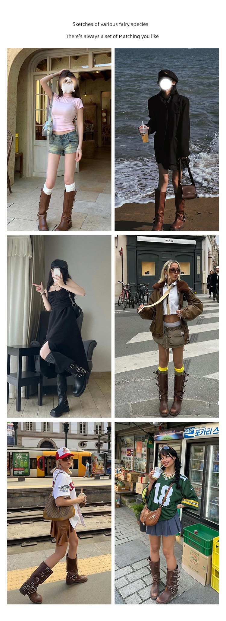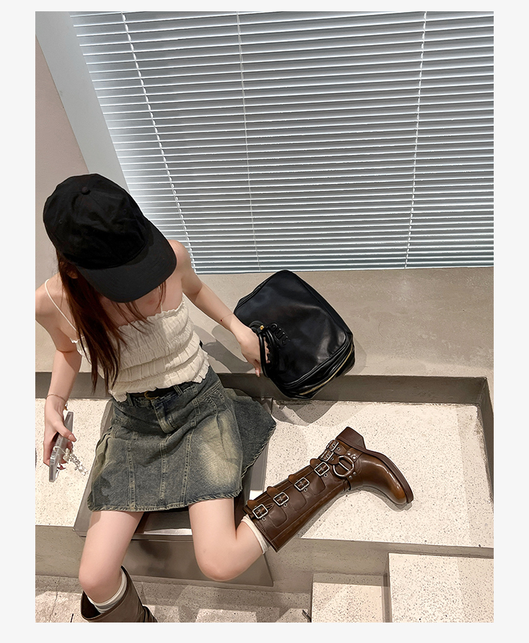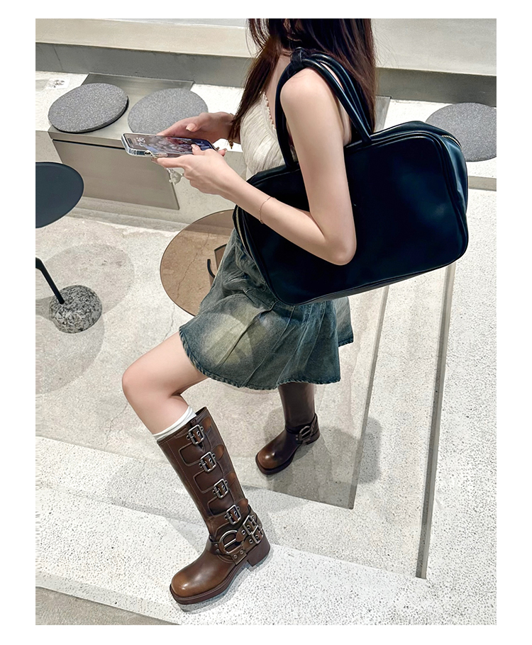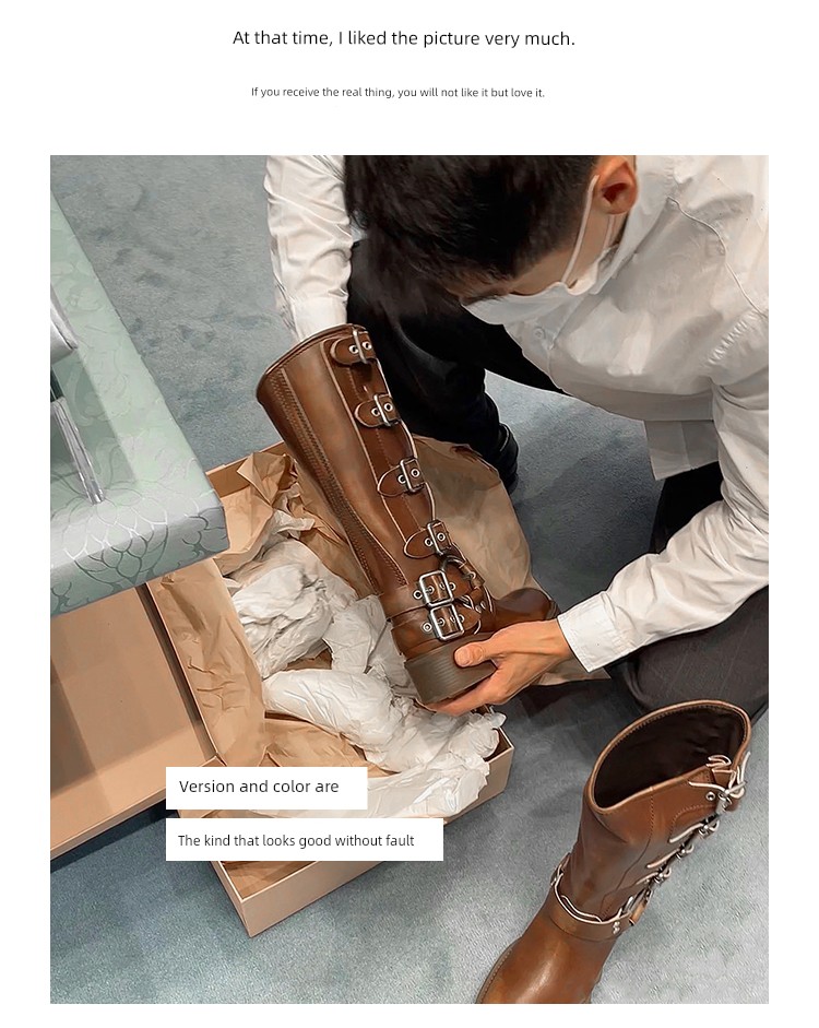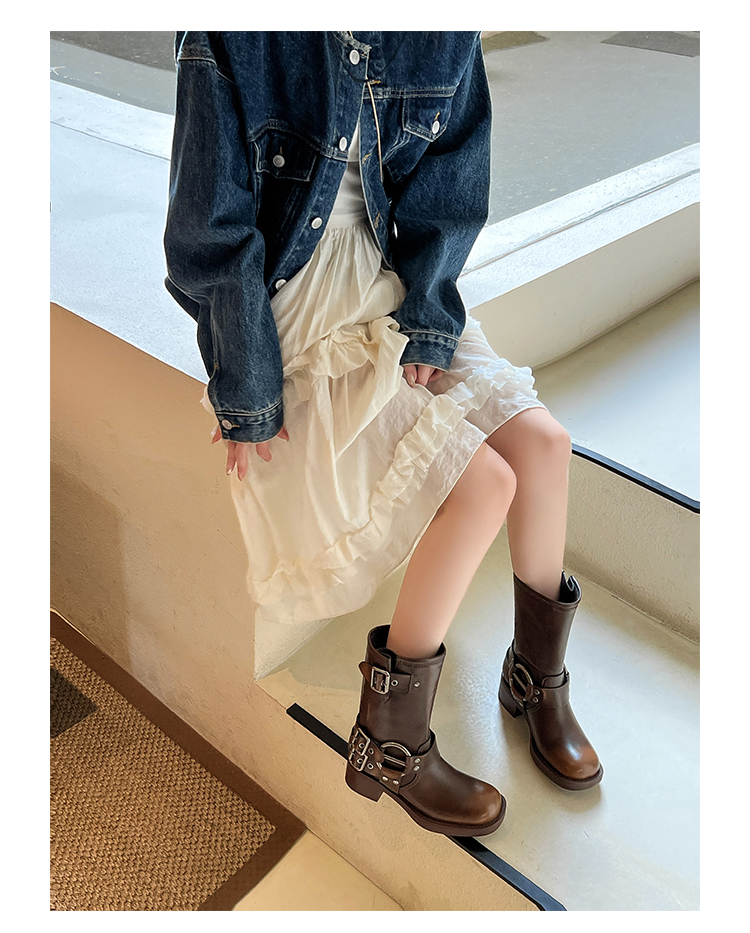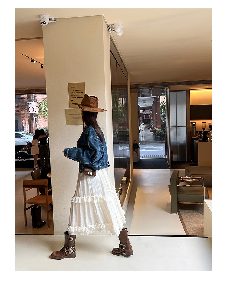 Travel Match ~ Uncle Miu Genuine Leather Thigh High Boots Western Cowboy Boot Women's Fall and Winter Knight Boots Brown Boots