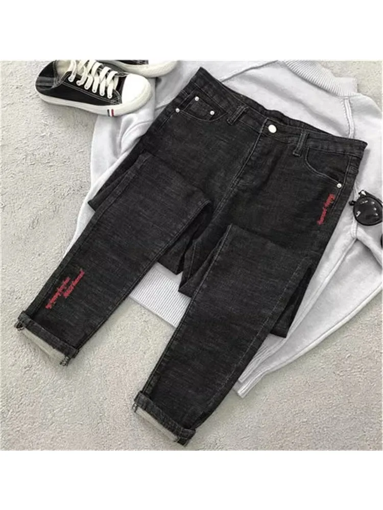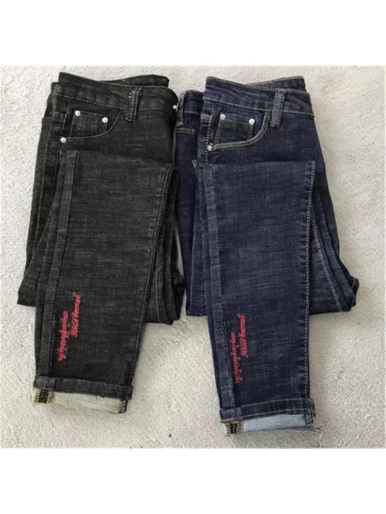 Women's High Elastic High Waist Jeans Fashionable Embroidered Long Pants Small Feet Pants Versatile Slim Fit Pencil Pants
